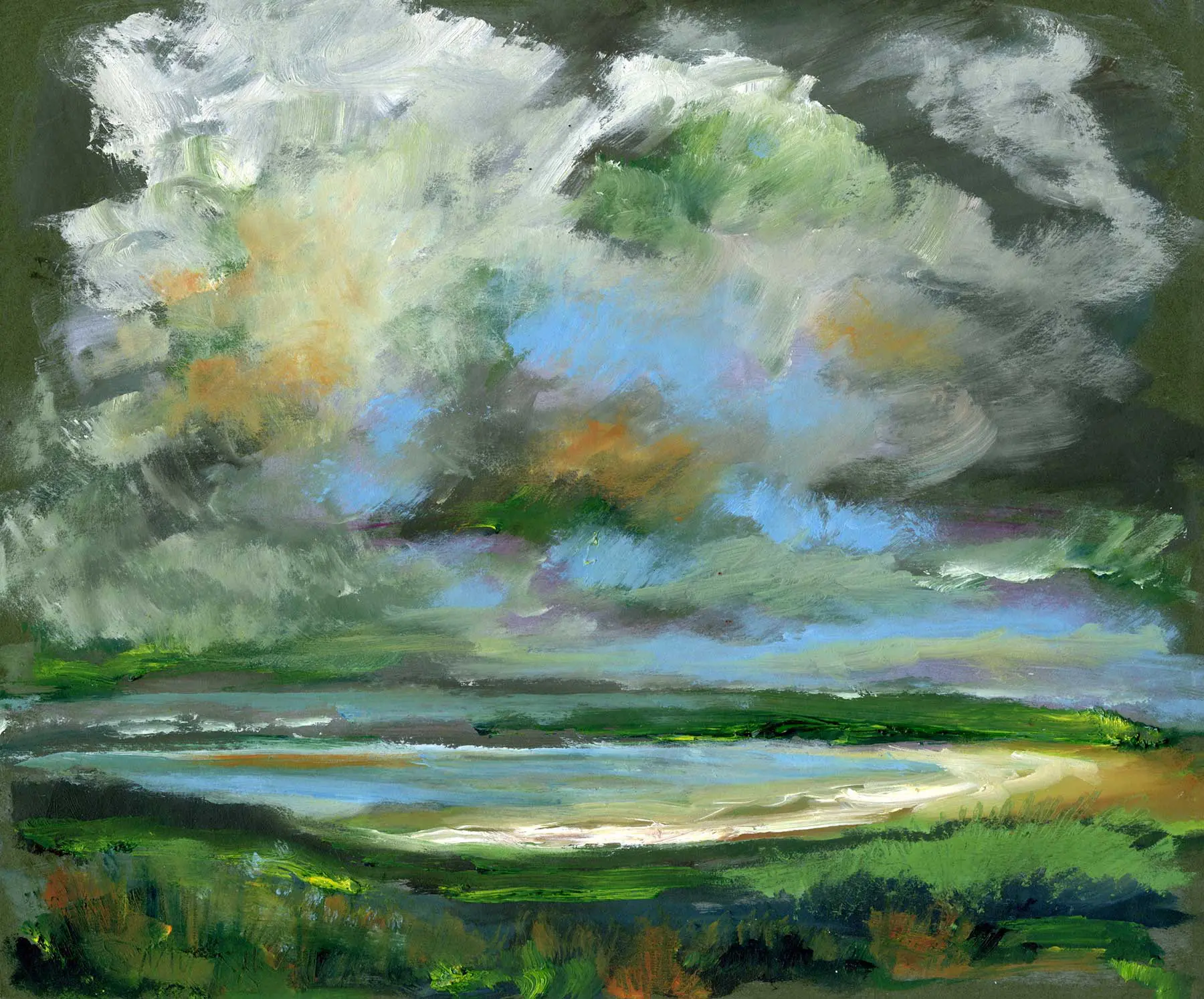 This little painting reminds me of trips further west in Donegal beyond Falcarragh and Tory Island. I have to say that when I saw the elephant come out in the sky I decided it was time to stop!