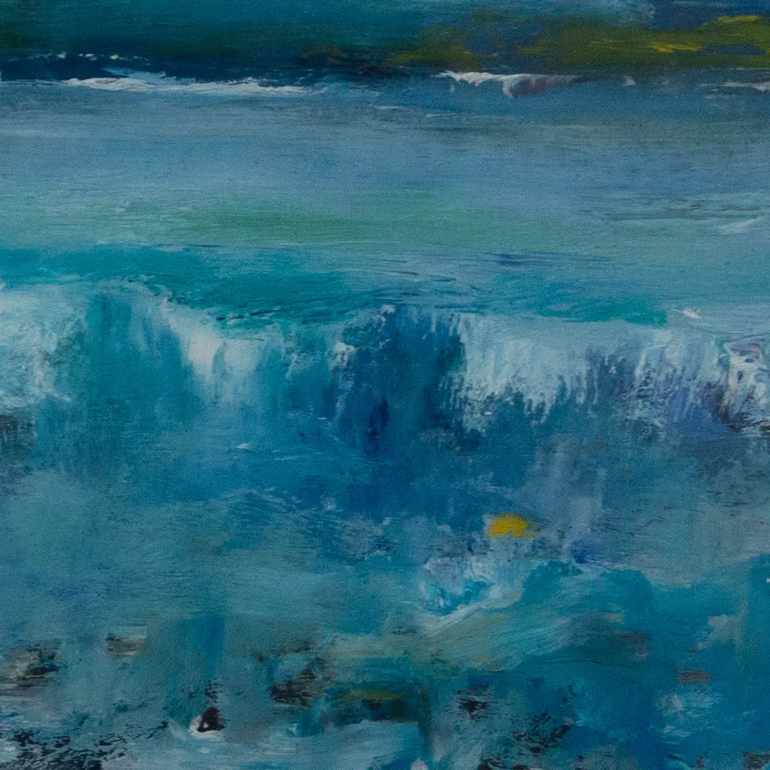 This oil painting was part of a series exploring the beauty and wildness of the Irish coastline in Donegal. It has a soft yet elemental energy with my usual mark making and scores through the layers of paint to uncover the colour and movement beneath.